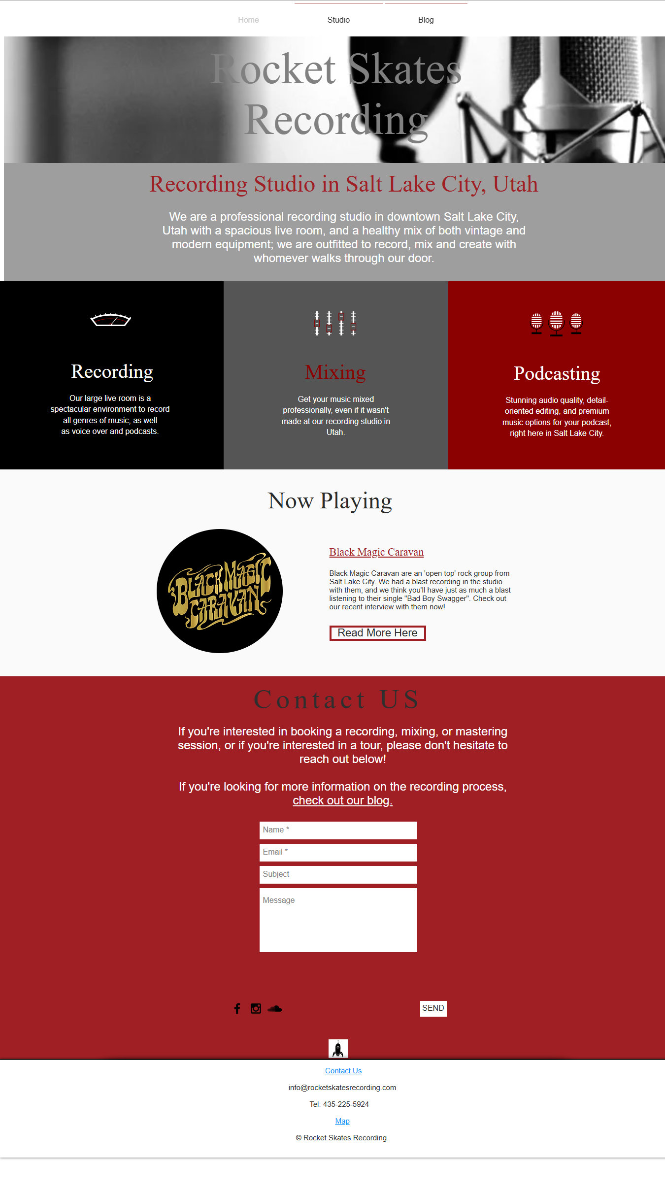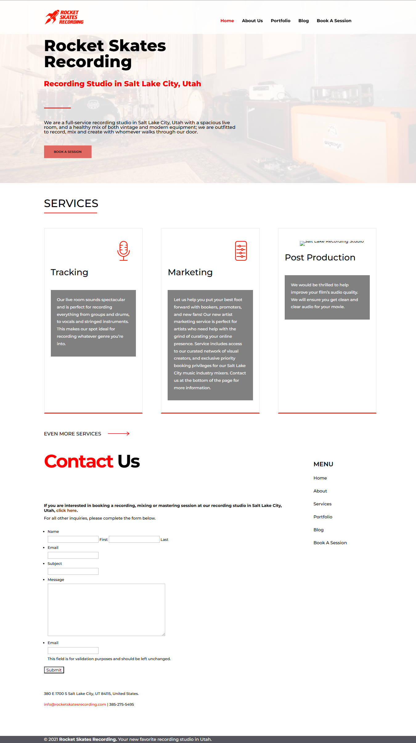 By the time I reached the final iteration of the Rocket Skates Recording website, I had picked up a better understanding of Gestalt principles, design trends, and the importance of accessability considerations. I’m really proud of how the site looked and behaved before I took it down. Again, this is a screenshot courtesy of the Wayback Machine, so you’ll notice that an image is missing. I had no idea at the time that I took the webpage down that I’d pursue a career in UX next!